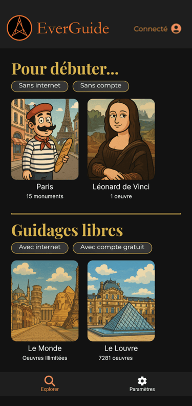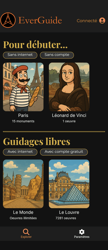 EverGuide est une application mobile innovante qui vous permet de découvrir l’histoire des œuvres et monuments en vous guidant librement.